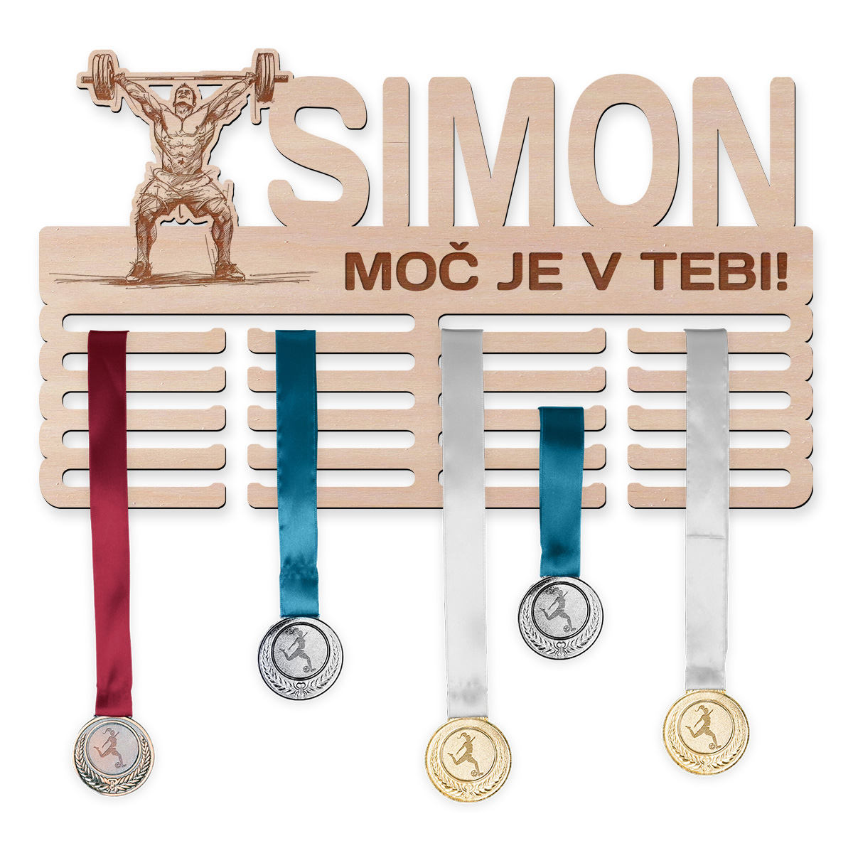 Vyrábíme obesalnike za medalje po meri glede na vaše želje. Samo posredujte ime, motivacijski stavek in športno silhueto, mi pa bomo poskrbeli za vse ostalo.